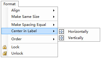 Center Horizontally: Aligns the selected object(s) relative to the center of the label.